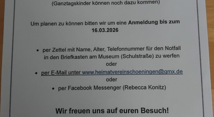 Um planen zu können bitten wir um eine Anmeldung bis zum 16.03.2026